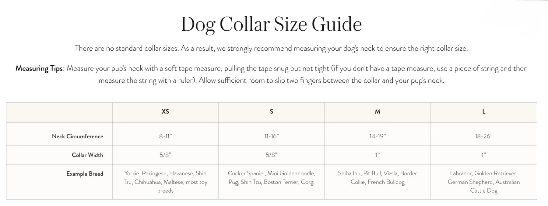 FIT AND SIZING Please measure your dog's neck to ensure a perfect fit. See our size guide for measuring tips and more details.