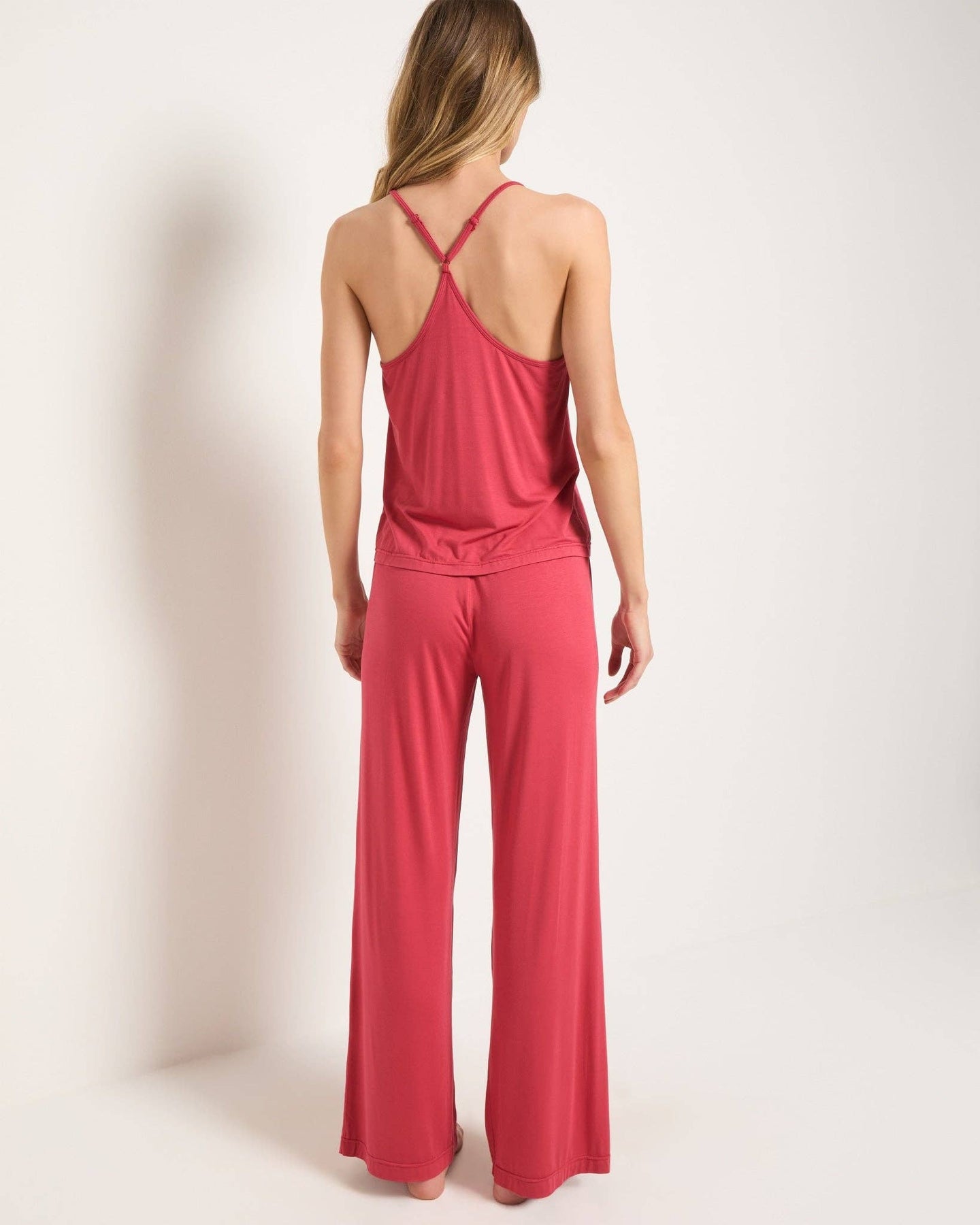 This lounge, pajama set is just as cute as it is soft. The perfect blend of comfort and charm, these pajamas are your new downtime favorite. Featuring a relaxed-fit tank with delicate lace details and easy, flowy pants.