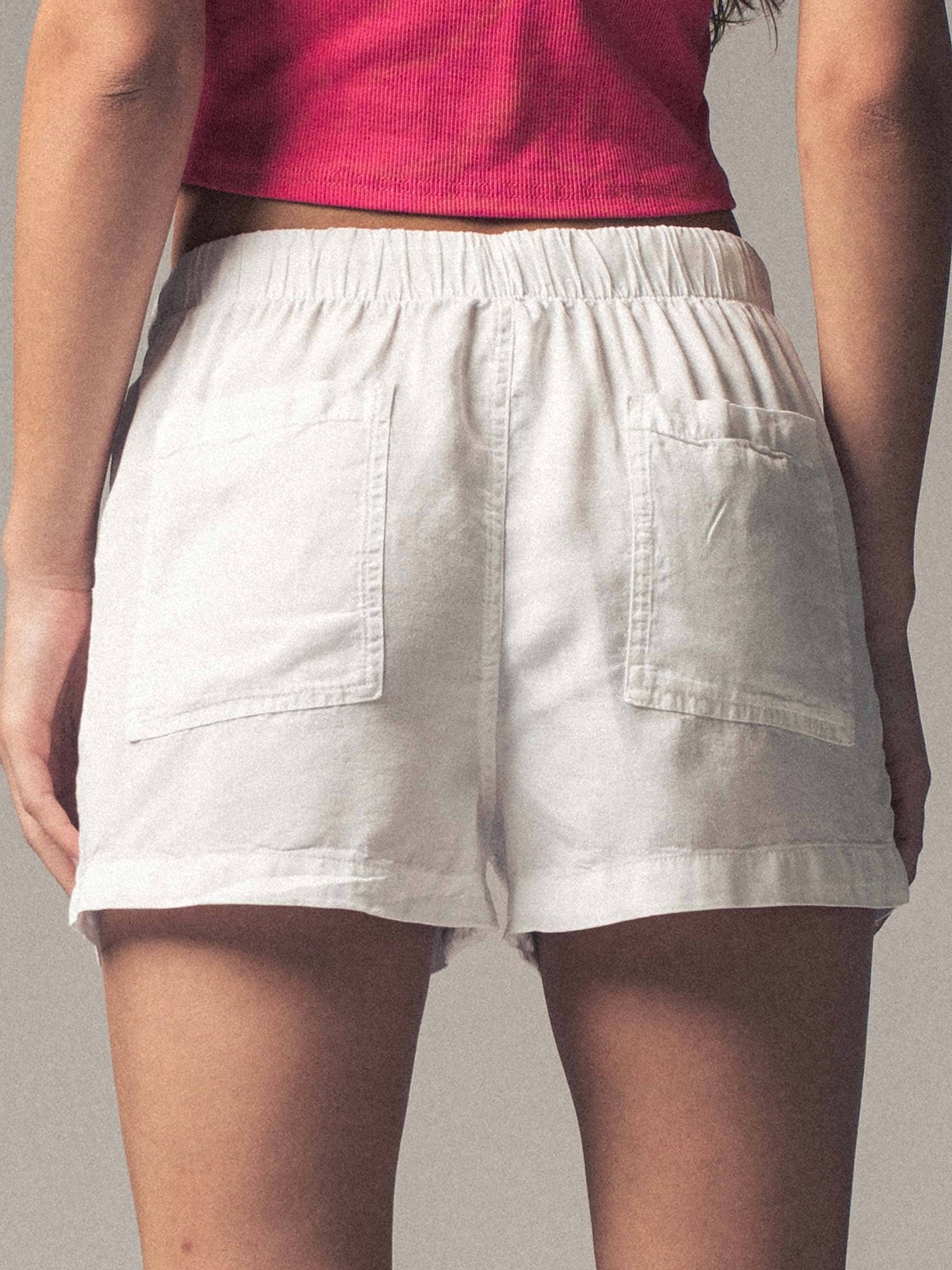 These lightweight summer shorts are crafted from 100% Tencel for a soft, breathable feel. Featuring patch pockets, an elastic waistband with a drawstring, and a relaxed fit, they are perfect for warm-weather comfort and effortless style.